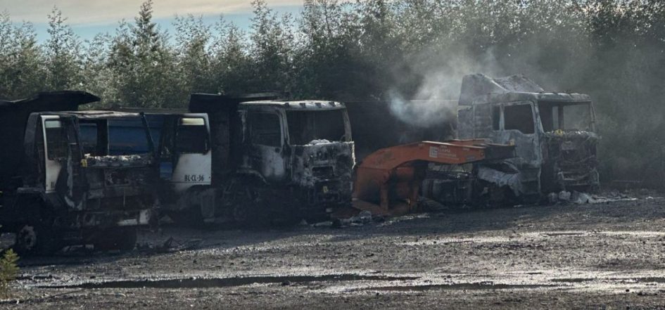 De acuerdo con información policial, los sujetos amenazaron a dos trabajadores con armas de fuego y quemaron 10 camiones y seis máquinas.