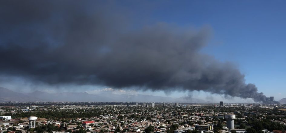 | Incendio en Pudahuel: “Actualmente el fuego se encuentra controlado, pero no extinguido, por la afectación que tenemos de los productos químicos peligrosos que se encuentran en el interior de esta bodega no informados. Lo cual ha generado un retraso en las labores de extinción finales”, explicó el comandante Jadhi Henríquez.